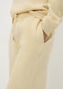 Relaxed yet refined, these wide-leg jogging bottoms combine comfort with a tailored touch. Crafted from soft stretch cotton, they feature a pleated front for subtle structure, while the elasticated waistband and working drawcord ensure a secure, adjustable fit. The buttermilk shade adds a pop of colour to your new season style. Perfect for lounging, running errands or casual meet-ups, they offer an effortless way to stay stylish without compromising comfort.