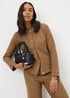 Soft, stylish, and effortlessly polished, the Camel Button-Up Bouclé Co-Ord Cardigan is your new go-to for cozy sophistication. Crafted from a textured bouclé knit, it offers a luxe feel with just the right amount of stretch for everyday comfort.