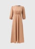 Elevate your style with our sophisticated midi tea dress in a timeless shade of camel. This dress exudes elegance, making it perfect for both formal occasions and chic everyday wear. Crafted from soft fabric, it promises a flattering fit and utmost comfort. The 3/4 sleeves add a touch of style to this dress, with the versatile camel colour meaning this dress can be dressed up with heels or dressed down with trainers.