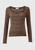 Learn moreThis elegant top features alternating camel and black stripes that gracefully adorn the fabric, offering a visual appeal that is both classic and contemporary. The scoop neck design adds a touch of femininity, while the long sleeves provide warmth, making it a versatile piece for every season. Crafted from high-quality materials, this top promises not only style but also comfort and durability. Pair it with your favourite jeans or skirt for a casual yet polished look.