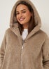 You can always stay warm and toasty in the colder seasons with this snuggly teddy fleece jacket. Styled in a versatile camel shade and featuring a zip up front for easy on/off, the cosy hood offers an extra layer of protection when the weather isn't on your side. Perfect for layering, as well as for teaming with jeans and boots. * Length: 81cm. * Model Height: 5ft 9 1/2.