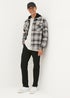 Learn moreStay warm and stylish with the Charcoal Check Hooded Shacket, a perfect blend of a shirt and jacket for versatile layering. Made from durable, soft fabric with a classic check pattern, this shacket provides the perfect balance of comfort and casual style. Featuring a black hood for added warmth, button-up front, and two chest pockets, this shacket offers both practicality and style. The charcoal check design adds a modern twist to a timeless look, making it an ideal outer layer for cooler days. Whether you're layering it over a T-shirt or wearing it as a standalone piece, this hooded shacket is perfect for effortless, laid-back outfits.