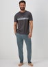 The charcoal shirt boasts a navy stripe with the word 'sleep,' adding a touch of bedtime charm. The navy pants, complete with a cord for an adjustable fit, ensure comfort as you relax.