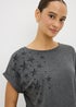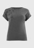 Get set to sparkle in this dazzling charcoal embellished top. Crafted from sumptuously soft viscose with added stretch, it features scattered star stud detailing for a delicate shimmer finish. Turn-tab cap sleeves and a simple crew neckline complete the dazzling design. It offers a plush yet versatile look, perfect for both day and evening wear.