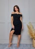 Bardot Split Detail Bodycon Midi Dress in Black - Creativity is at the heart of everything we do at Chi Chi. From our unique hand designed prints and heritage embroideries to our distinctive dress styles we aim to always be inspirational through the fashion that we create.