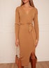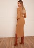 Wrap Split Side Knitted Midi Dress in Camel - Creativity is at the heart of everything we do at Chi Chi. From our unique hand designed prints and heritage embroideries to our distinctive dress styles we aim to always be inspirational through the fashion that we create.