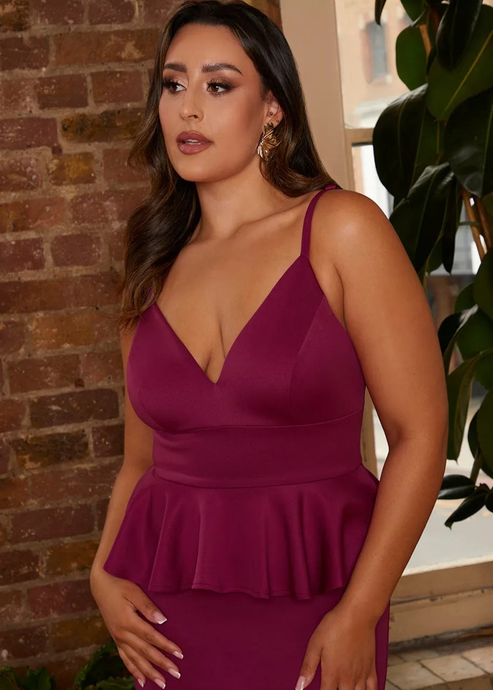 Cami Strap Ruffle Detail Bodycon Midi Dress in Berry - Creativity is at the heart of everything we do at Chi Chi. From our unique hand designed prints and heritage embroideries to our distinctive dress styles we aim to always be inspirational through the fashion that we create.