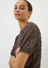 Elevate your work to weekend wardrobe with this chic chocolate brown top. Crafted from sumptuously soft stretch viscose, it features a statement bubble texture, short puff sleeves, a crew neckline and a delicate lettuce hem. Its plush design is both comfortable and chic.