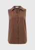 Spruce up summer dressing with this dreamy chocolate brown clipper shirt, a versatile piece that effortlessly blends elegance and ease. Crafted from sumptuously soft, lightweight clipper fabric, this sleeveless shirt features a smart collared v-neckline and a button front.
