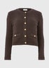 A refined layer with effortless polish, this chic cardigan is crafted in a compact stitch knit that adds subtle structure to your look. The chocolate brown shade feels modern and versatile, while the statement buttons bring a touch of contrast through the front and on the neat flap pocket detailing.
