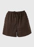 Heat up holiday dressing with these chic chocolate brown co-ord shorts. Designed with a subtle textured finish, they add a little extra detail while staying easy to wear. The elasticated waistband offers all-day comfort, and the adjustable drawcord lets you find your perfect fit. Pair them with the matching co-ord top for a laid-back yet put-together look.