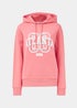 Inject some chic American style into your laid-back wardrobe with this comfy hoodie. Featuring a 3D 'Atlanta' graphic in white, this snuggly hoodie comes with a pretty pink base colour. Additional style notes include a stretchy ribbed texture to the cuffs and hem, along with drawstrings to the toasty hood to allow you to personalise your fit. Coordinate with your favourite joggers. Model Height: 5ft 9.