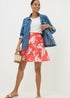 Our Coral Bloom Cheesecloth Mini Skirt is the epitome of summer chic. This lightweight and airy skirt flows beautifully with every step, ensuring you stay cool and comfortable even on the hottest days. Crafted from a viscose cheesecloth fabric, this skirt features a vibrant and eye-catching large floral bloom print in coral hues.