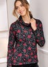 Cotton Traders Black Long Sleeve Cowl Neck Print Jersey Top