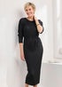 Roman Black Ribbed Knit High Neck Midi Dress