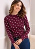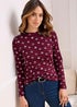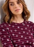 Cotton Traders Burgundy Wrinkle Free Long Sleeve Print Top
