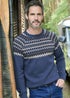 Cotton Traders Dark Aegean Cotton Fair Isle Crew Neck Jumper