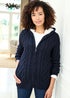 Cotton Traders Dark Blue Cable Hooded Zip Cardigan