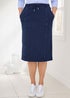 Cotton Traders Dark Blue Jersey Denim Pull-On Knee-Length Skirt