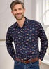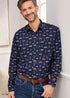 Cotton Traders Dark Blue Luxury Long Sleeve Soft Touch Print Shirt