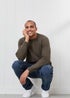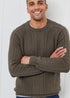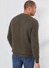Cotton Traders Dark Khaki Cotton Textured Cable Crew Neck Jumper