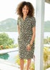 Cotton Traders Dark Moss Printed Cotton-Linen Knee Length Dress