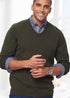 Cotton Traders Dark Thyme Cotton V-Neck Jumper