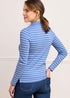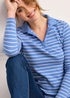 Cotton Traders Deep Iris Cosy Up Long Sleeve Stripe Polo Shirt