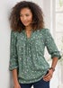 Cotton Traders Forest Green Printed Crinkle Blouse