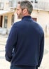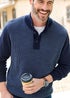 Cotton Traders Ink Half Button Textured Birdseye Jumper