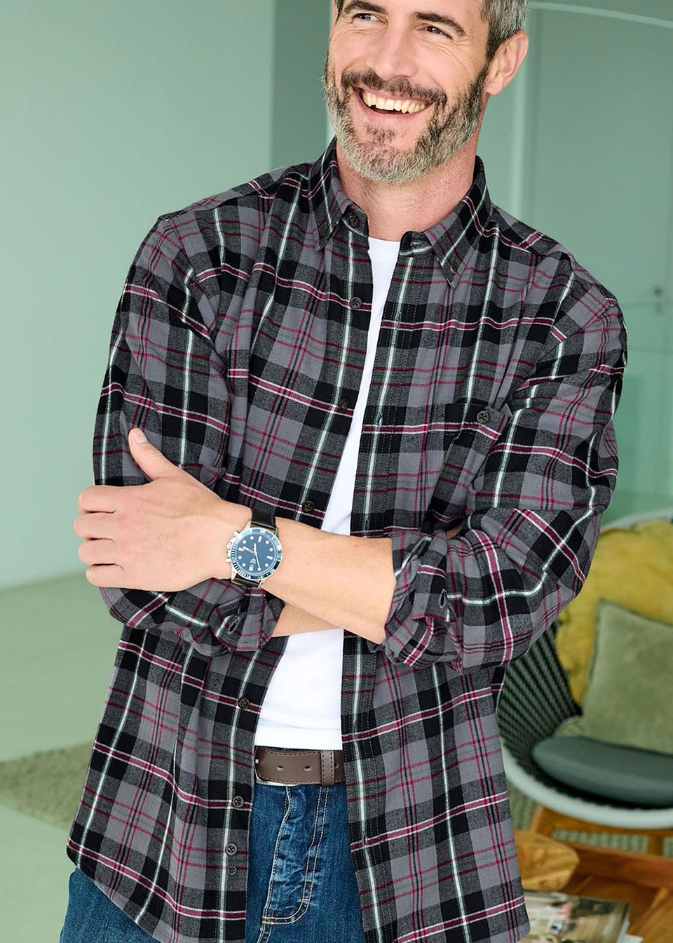 Cosy brushed cotton flannel and colour-rich checks, this is autumn in shirt form. As the air outside starts to cool, we’ll be wearing ours unbuttoned over a cotton tee, and when winter arrives, it will layer perfectly under a soft knit, gilet or coat for warmth. A chest patch pocket, button-down collar and double-button cuffs give it a classic smart-casual look.