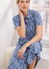 A soft and stretchy jersey dress is a staple of any stylish woman’s wardrobe, and in a gorgeous new-season print, this version is no exception. In a flattering midi length with a functional button-through front and practical pockets, it’s great as a solo dress on summer days but can also be buttoned over tights and a long-sleeved white tee when the weather cools.
