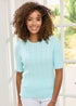 Cotton Traders Mint Short Sleeve Cable Jumper