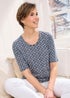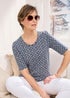 Cotton Traders Navy 1/2 Sleeve Printed Scoop Neck Top