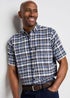 Cotton Traders Navy Guinness TM 1/2 Short Sleeve Oxford Check Shirt