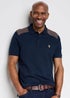 Cotton Traders Navy Guinness TM 1/2 Short Sleeve Textured Panelled Polo Shirt