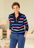 Cotton Traders Navy Stripe Zip-Neck Sweatshirt
