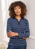 Cotton Traders Navy Wrinkle Free Stripe Long Sleeve Polo Top
