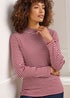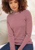 Cotton Traders Rusty Red Wrinkle Free Long Sleeve Stripe Turtleneck Top