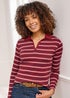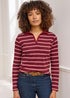 Cotton Traders Rusty Red Wrinkle Free Stripe Long Sleeve Polo Top