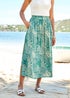 Cotton Traders Sea Green Pull-On Printed Crinkle Maxi Skirt