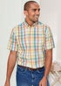Cotton Traders Soft Yellow Short Sleeve Casual Check Shirt