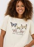 Our charming OPP Graphic Tee Butterflies Cream is the epitome of springtime elegance. This lightweight, short-sleeved tee boasts an enchanting butterfly design, adding a touch of whimsy to any outfit. Crafted from high-quality cotton, it's incredibly comfortable and perfect for daytime jaunts or casual evenings out.