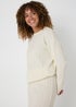 Our cream cable knit sweatshirt is the perfect addition to your autumn wardrobe. This cosy and stylish set features a relaxed-fit pullover, crafted from a soft and textured cable-knit fabric, paired with matching trousers for a coordinated look. The sweatshirt features a crew neckline and long sleeves for added comfort. With an all over cable knit style, this sweatshirt ensures a stylish and cosy wear, whether you're lounging in the house or going for a cosy autumn adventure.