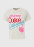 This season, quench your thirst for style with our Cream Cherry Coke T-Shirt , the ultimate beverage-inspired must-have from our ladieswear department. Refresh your look with this delightful tee, featuring a vibrant cherry red, pink and blue graphic print, on a clean cream hue, reminiscent of the iconic cherry cola. Crafted from a super-soft cotton blend, this tee feels as good as it looks, ensuring utmost comfort all day long. The relaxed tee fit offers a casual, effortless style, making it perfect for both relaxed days in and fun nights out. Tuck it into a high-waisted skirt or pants to create a flattering, retro-inspired silhouette.