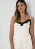 Cream Contrast Lace Satin Cami Set