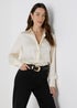 Our new crinkle satin shirt in cream is perfect for any occasion. Crafted from luxurious satin, this shirt boasts a beautifully textured finish and a soft, fluid drape. With its elegant V-neckline, neat button-down front and long sleeves, it's sure to become a staple in your wardrobe.