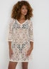A must-have for any fashion-forward wardrobe, our Cream Crochet Long Sleeve Mini Dress is a timeless piece that exudes sophistication and elegance. Crafted from high-quality materials, this dress boasts intricate floral crochet look detailing that adds a touch of delicate femininity to its overall design. Featuring a luxurious cream colour that complements any skin tone, with a elegant v-neckline and a flattering long sleeves for added coverage and warmth. Perfect to throw over your swimsuit for days lounging at the beach.