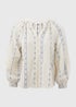 Cream Dobby Embroidered Blouse Top