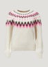 Get into the spirit of winter with the help of this cute jumper. On a cream base sits a timeless fair isle design that'll never go out of fashion. Stretchy ribbed detailing to the neckline, cuffs and hem finish this super cute number. Great for teaming with jeans and boots. Model Height: 5ft 9.